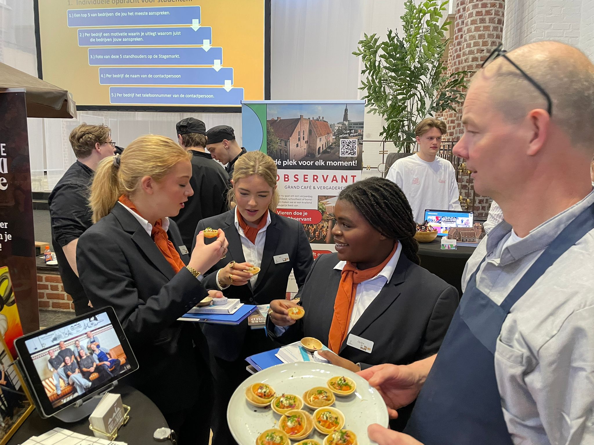 "De horeca staat te springen om extra handen en wil studenten graag praktijkervaring bieden en hen opleiden. Er was dan ook veel vraag vanuit de leerbedrijven om aanwezig te zijn bij de stagemarkt, we hadden zelfs een wachtlijst. Studenten en leerbedrijven waren enthousiast en er ontstonden mooie gesprekken".